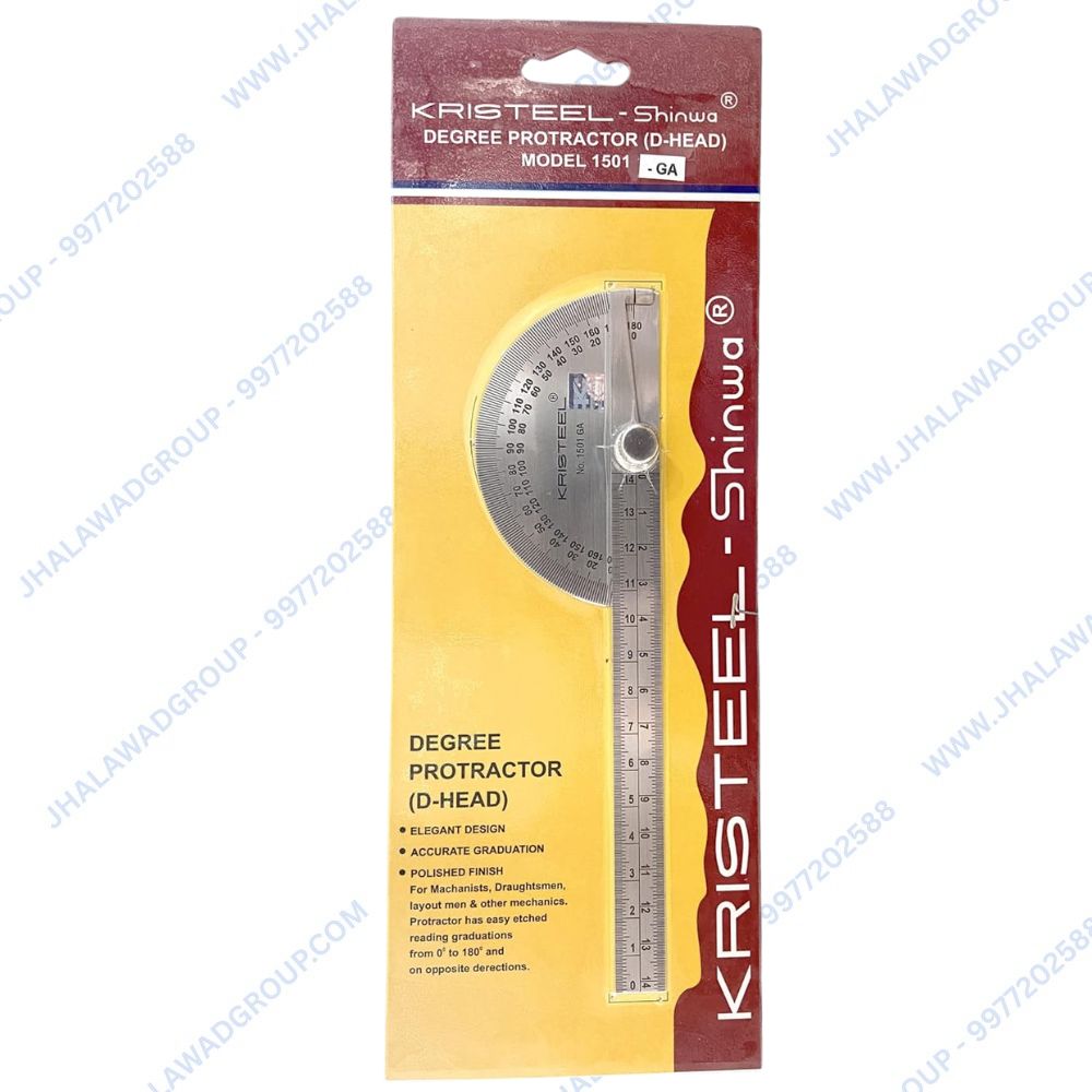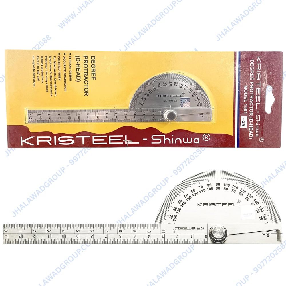 The KRISTEEL Degree Protractor Cum Depth Gauge 1501GA is a high-precision, dual-purpose tool designed for professionals in engineering, machining, and fabrication. Combining a degree protractor and a depth gauge in one robust instrument, it allows for the efficient measurement of both angles and depths with exceptional accuracy. The tool features a high-quality stainless steel construction, ensuring durability, corrosion resistance, and long-term reliability in demanding environments.